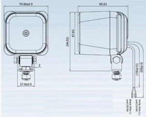 ヘッドガード等に取り付け、青色光の集束ビームで床面を映し、一定距離でフォークリフトの近づきを認識する事ができます。