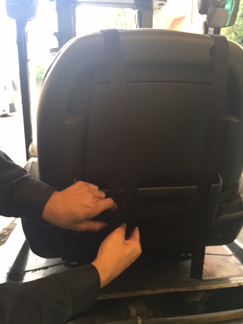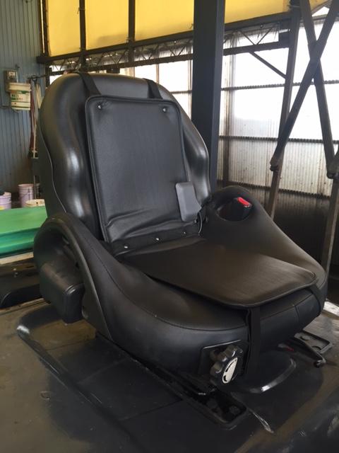 フォークリフトの椅子に、シートヒーターを乗せます。