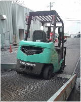 お客様のフォークリフトが当社へ運ばれてきました。 |
